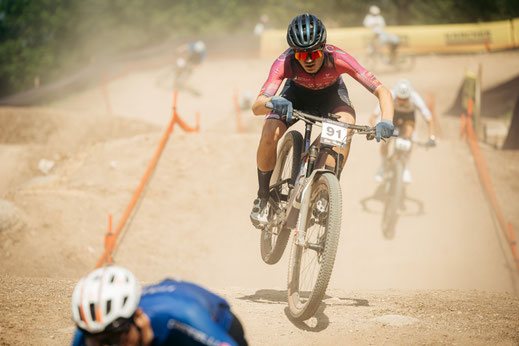 Bei extrem heißen Temperaturen und staubigen Bedingungen ging es für Fabi, Niklas und Lennart beim fünften Weltcup der Saison an die Startlinie von Val di Sole. Fabi konnte schon im XCC am Freitag einen starken 13. Platz nach schwierigem Start einfahren. Von einem super Startplatz aus der zweiten Reihe fuhr er am Sonntag beim XCO ein souveränes Rennen und konnte mit Platz 19 erneut ein starkes Top 20-Resultat einfahren. Niklas lieferte ebenfalls ab und konnte sich von Startplatz 91 in die Top 40 vorkämpfen. Durch kleinere Probleme wurde es am Ende ein respektabler 51. Platz. Anschließend stand die Elite-Kategorie an. Lennart fuhr ein konstantes Rennen und arbeitete sich Runde für Runde weiter nach vorne. Er überquerte die Ziellinie schlussendlich als 32.